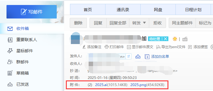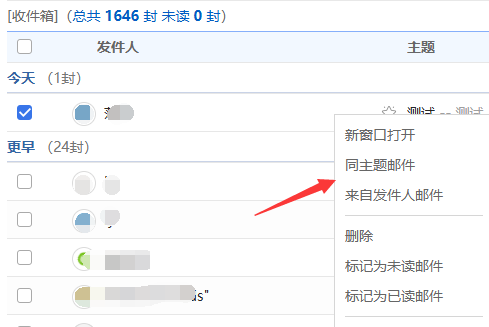 点开邮件详情,上面也有“同主题邮件”标签。