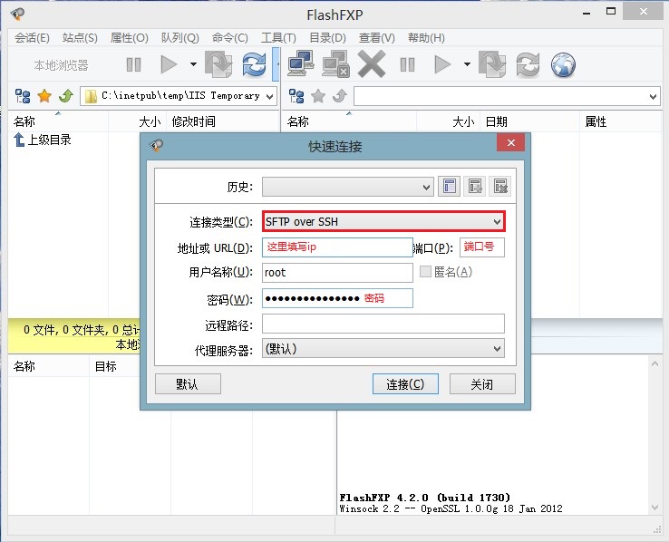 1.打开ftp工具,选择链接类型,并输入登录账户密码